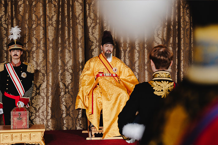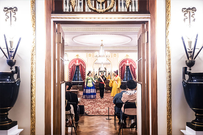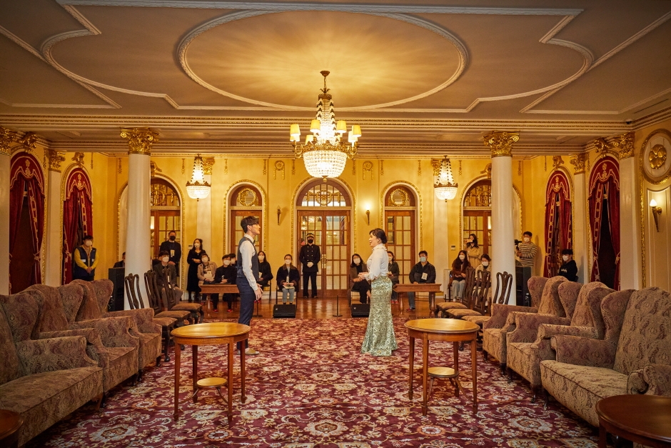 덕수궁 밤의 석조전 프로그램의 또 다른 하이라이트는 접견실 무대에서 진행되는 특별 뮤지컬 공연입니다. 이 공연은 헤이그 특사 파견 후 강제 퇴위된 고종과 황위를 이어받은 순종, 그리고 순정효황후의 이야기를 담고 있습니다.