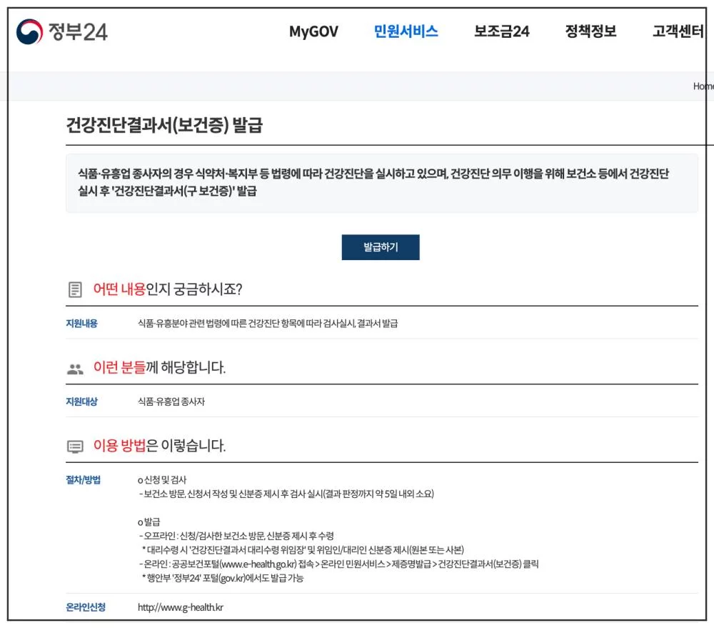 보건증은 검사만 마치면 인터넷으로 편리하게 발급받을 수 있습니다. 아래 절차를 따라해보세요.
