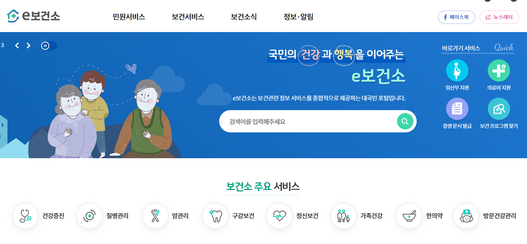 - 공공보건포털 접속하기: https://www.e-health.go.kr/에 접속합니다.