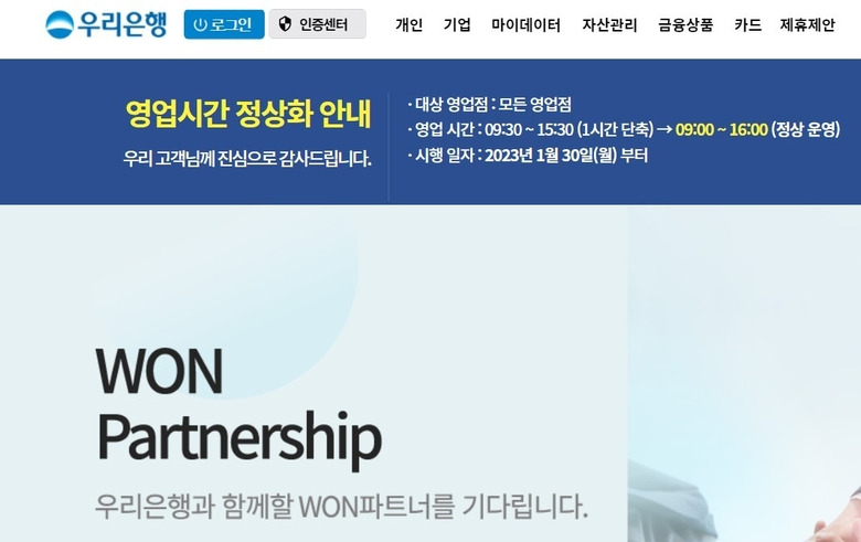 우리은행 점심시간 운영 안내