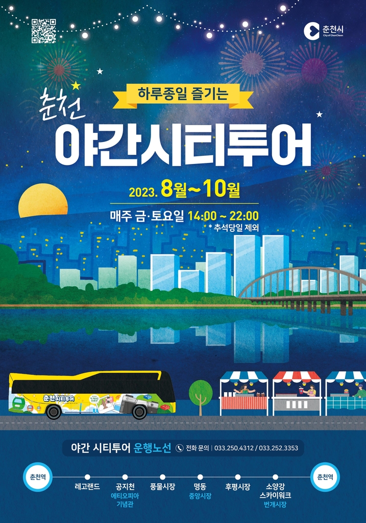 - 평일 춘천시티투어버스는 반드시 사전 예약하세요. 인기 코스는 빨리 마감됩니다.
