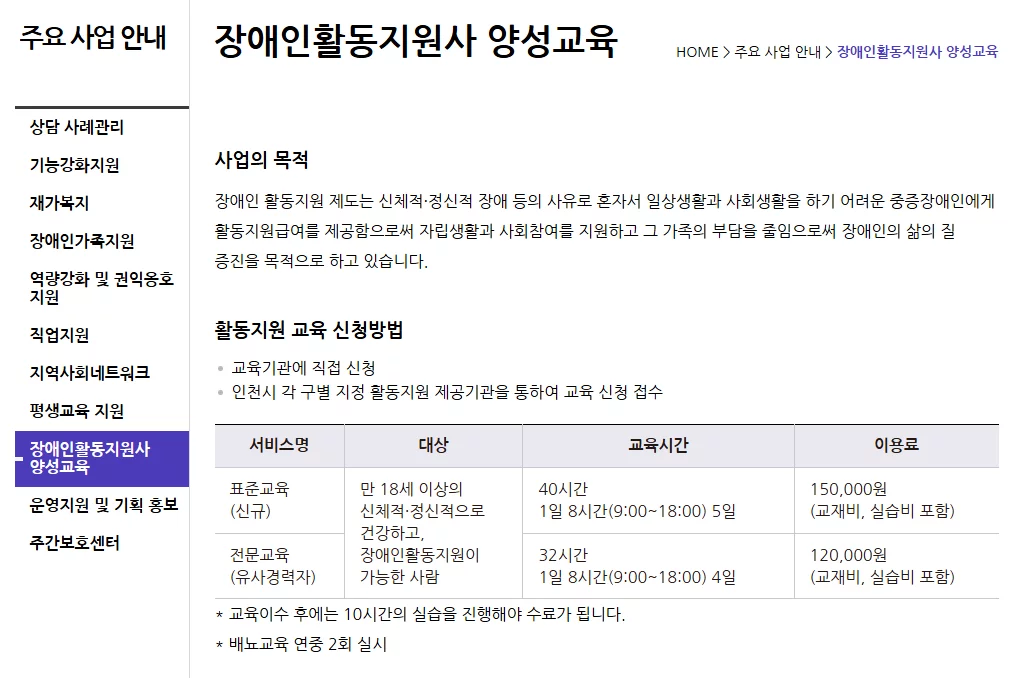 • 활동지원사 교육기관에서 표준교육과정 이수 (총 50시간)