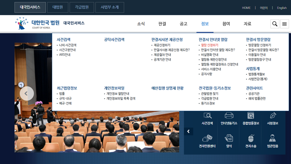 대한민국 법원 판결문 조회를 위한 온라인 열람 신청은 다음과 같은 간단한 절차로 진행됩니다: