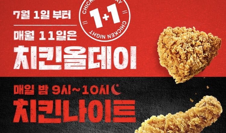 KFC 1+1 행사 추가 꿀팁: 치킨 올데이 1+1